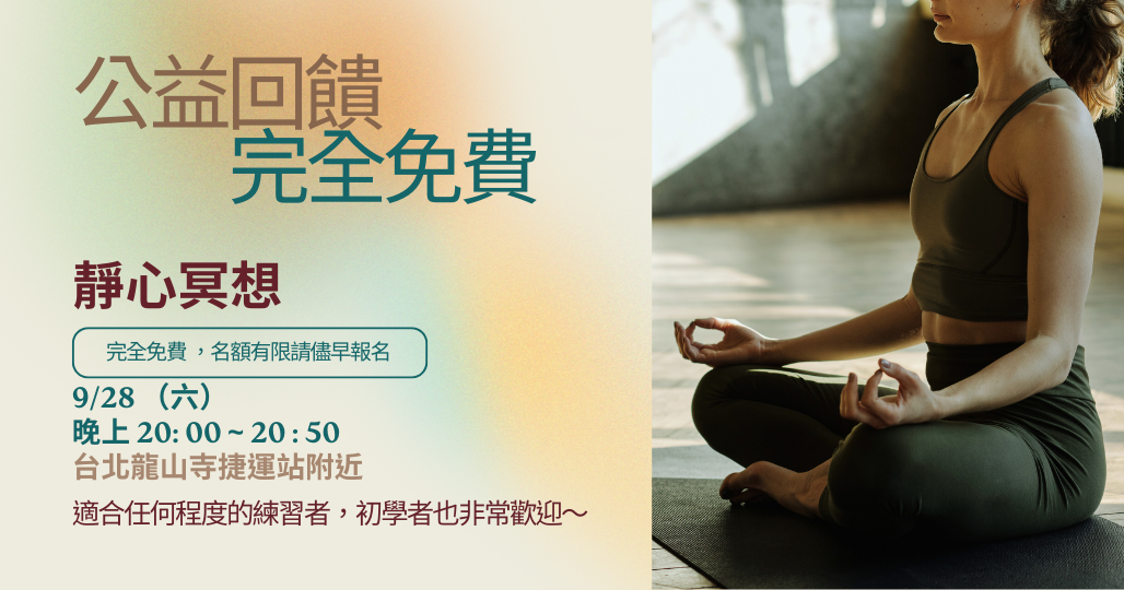 靜心、靜坐無關乎你的宗教信仰或哪個法門、派別,也無關乎你練習幾年、每天練習多久,坐幾小時,而是關乎於你如何過你人生當中的每一分每一秒。如果你嘗試很多不同的方法依然沒有頭緒,或是你參加過許多靜坐講座讓你有不舒服、內心產生疑慮的經驗,那就來這跟我們一起放鬆吧!!